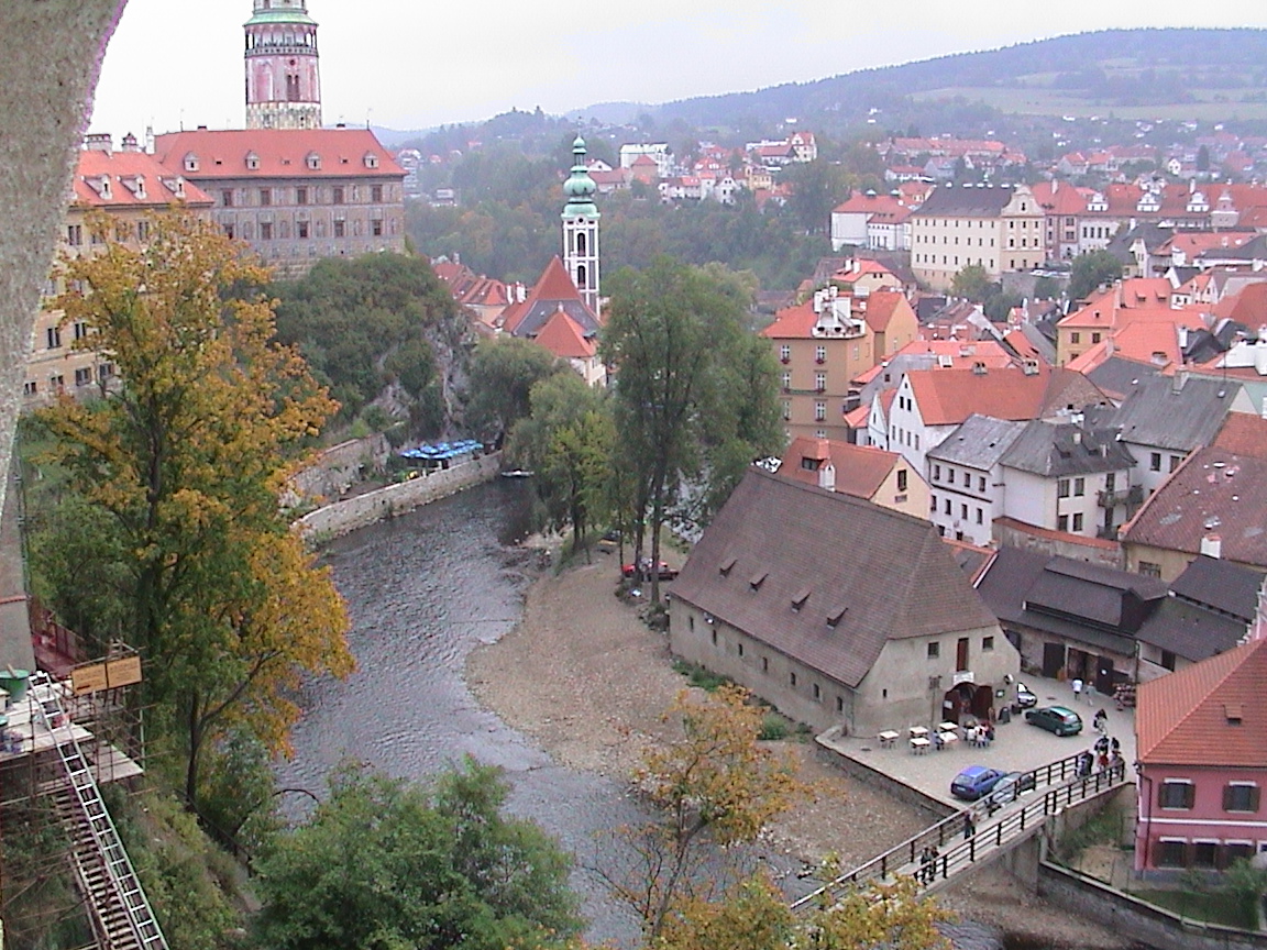 下りるとバスが停まっていた。ブディエヨヴィツエ門下車。石畳をカートを引っ張って歩く。チェスキークルムロフ城の下、